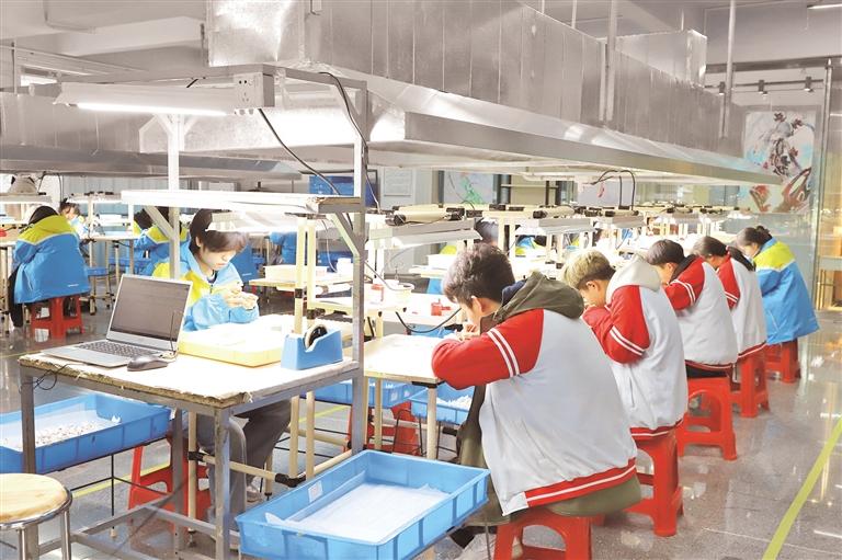 “我们与毕节明月工艺美术有限公司共建订单班,企业不仅派师傅每周到校授课,还提供生产原料,2024年已有30余件学生作品通过质检进入市场,销售额达1.2万元。”工艺美术教学团队教师韩静介绍,订单班实行“校企共定人才方案”,将企业岗位标准、技术规范融入课程,让学生在校就能接触行业新技术、设备,实现“学习即就业”的无缝衔接。